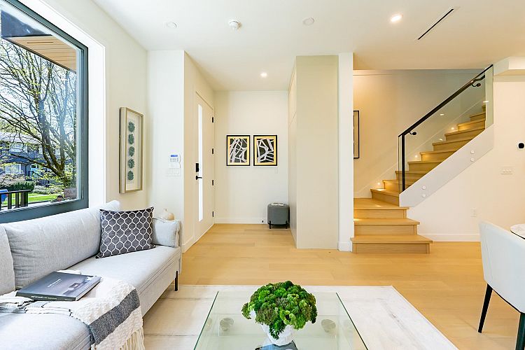 Brand new home 2026 spring. NO strata fee! A curated collection of bespoke Duplex homes on Vancouver's tree-lined Kerrisdale neighborhood. 2 Bed 1 Bath Legal rental suite in basement. Impeccable space designed enables spacious interiors for living. Smart Home systems equipped community, together with spa-like bathrooms, air conditioned and floor heating and more. Openhouse April 2-4 p.m. 25 & 26
