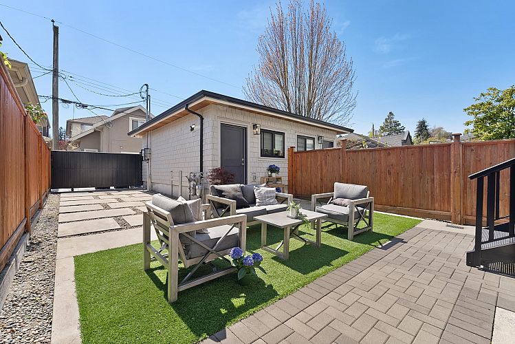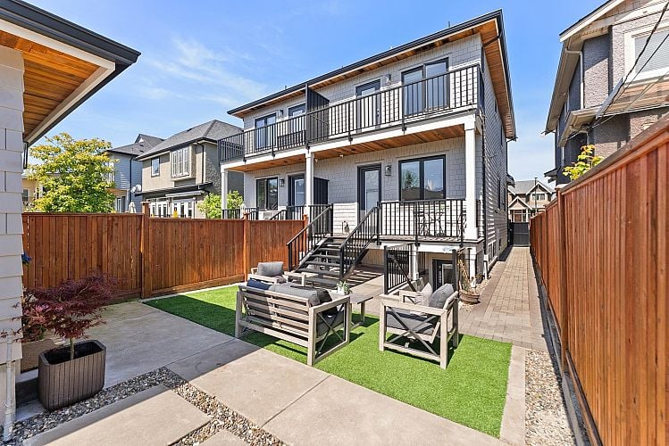 Stylish and family-friendly half duplex in one of Vancouver’s most charming west side neighbourhoods. Offering 4 beds and 4 baths, this home blends modern design with everyday comfort. The bright open-concept main floor features a stunning kitchen with large island, sleek built-ins, and seamless flow to a private sun-soaked backyard—perfect for BBQs, kids, or quiet evenings outside. Detached garage plus extra carport for added parking and storage. Upstairs offers an exposed brick feature wall, dreamy primary suite with private balcony, plus two more bedrooms with window nooks and peekaboo mountain views. Downstairs, a fully self-contained suite with separate entrance, kitchen, bath, and laundry is ideal for guests, in-laws, or rental income. Showing Sun Apr 26th 2-4pm