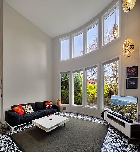 Rare and unique FRONT 1/2 Duplex in CALMED North of 4th location - a city oasis! Private front yard! Completely renovated with permits! Cedar siding, envelope, roof, windows & more also updated. Main flr has soaring 20' ceilings with floor to ceiling windows, new gas fireplace & modern open stairway. Dining room has hardwood floors & opens to a spacious full size renovated kitchen. Powder room on main flr. The 2nd level features master bedroom with a deluxe 5 pc ensuite. Up the spiral staircase to the third floor w/ 4 pc bath, currently a large open den but you can turn back to 2 bedrooms. Top floor has private north facing man view deck. Bonus: 100 SF bsmt + 600SF crawlspace storage + single car garage! Ask for extensive upgrades list. 1 blk to Jericho Beach, Pt Grey Rd, 4th Ave, and bus.