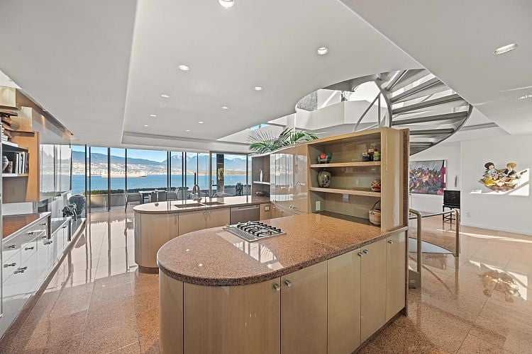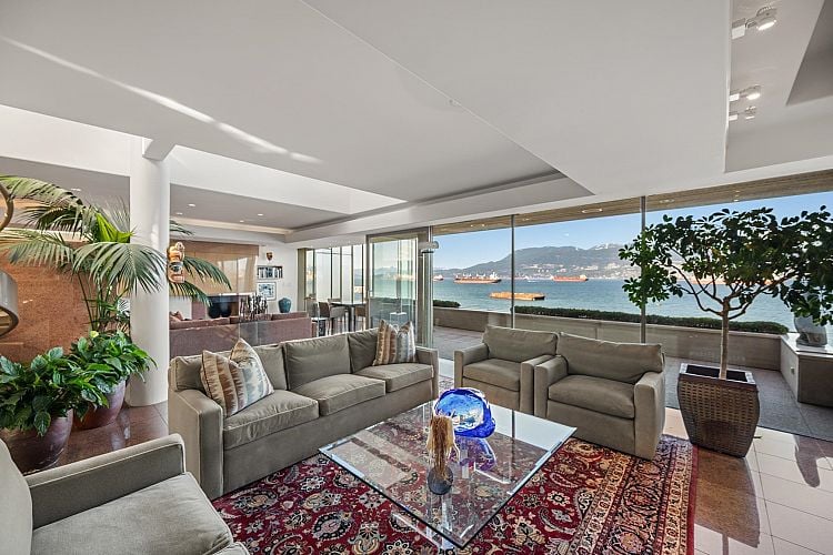 Completely reimagined by architect Dan White, this stunning West Coast Modern waterfront home is the perfect blend of function & style, designed with incredible attention to detail. At its heart, a sculptural staircase serves as both a statement piece and a connection between the open, airy living spaces. Clean lines & a sleek interior design enhance its modern aesthetic, creating a natural flow throughout. Situated on prestigious Point Grey Road, this home features floor-to-ceiling windows that capture panoramic views of the city, mountains, and ocean. The open-concept design is flooded with natural light, creating a beautifully illuminated atmosphere where the spectacular surroundings take centre stage. Unique to this home is a double garage as well as ample space in the front driveway.