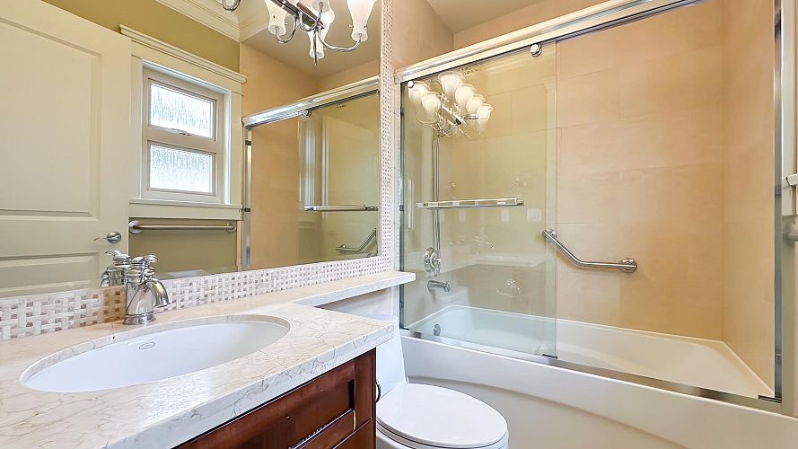 Freshly painted and meticulously maintained 5 bedroom, 5 bath family home in Arbutus, ready to move in. Four spacious bedrooms upstairs, two with ensuites. Main floor includes an office that can convert to a bedroom with a full bath, plus an open kitchen and formal dining area. Basement has a separate entry, suitable for a potential one-bedroom suite or mortgage helper. Highlights include radiant heat, central air, south-facing patio, fenced yard, flat landscaped lot with strong curb appeal, and a 3 car garage. Located in the Carnarvon Elementary and Prince of Wales Secondary catchment. Nearby amenities include Arbutus Club, Trafalgar Park, and the Arbutus Greenway. Quick access to Kerrisdale, Kitsilano, UBC, and local shops, cafés, and restaurants. Open House Sat/Sun, Oct 11 & 12 from 2-4