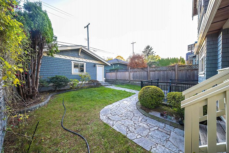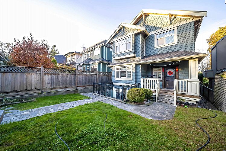 Located in the prestigious Point Grey neighborhood, this well-designed home offers over 2,800 sq.ft. of comfortable living space with a bright, south-facing backyard. The upper level features four spacious bedrooms and three bathrooms, while the main floor includes formal living and dining areas, a cozy family room, kitchen, and breakfast nook. The basement presents a large media room plus a two-bedroom legal suite with a separate entrance—an ideal mortgage helper. Elegant details such as custom millwork, hardwood flooring, stained-glass accents, exquisite tile finishes, dimmable lighting, and high-end appliances showcase exceptional craftsmanship throughout. Within the catchment of top-ranked Lord Byng Secondary and Queen Elizabeth Elementary.Only a 5-minute bus ride to UBC.
