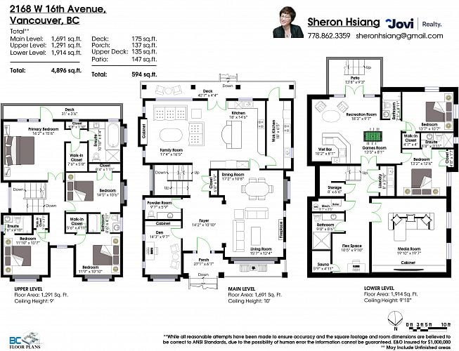 Luxurious Custom Home with Mountain Views! Immaculately maintained 6-bedroom residence featuring soaring 10ft ceilings on both the main and basement levels. Designed with high-quality craftsmanship and exquisite finishes, this home offers a gourmet kitchen plus functional wok kitchen, both equipped with top-of-the-line appliances. Enjoy ultimate comfort with a steam room, jetted tub, A/C, HRV, home theatre, built-in sound system, wet bar, sauna and a 4-car garage. Perfectly located with quick access to shopping, transit, downtown Vancouver, UBC, and Richmond. Top school catchments: Trafalgar Elementary & Prince of Wales Secondary. Just minutes to prestigious private schools including York House, West Point Grey Academy, Crofton House, and St. George's. Book your private showing today!