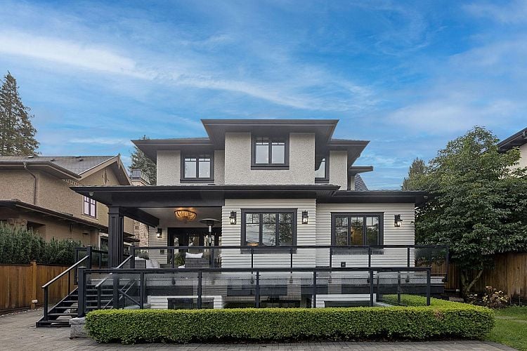 Vancouver’s prestigious Shaughnessy area, designed by acclaimed architect Don Piner and award-winning interior designer Beyond Beige. spacious principal rooms, dining, gourmet kitchen with a work kitchen, and family room and office—with custom millwork, subtle Parisian-inspired touches, and integrated smart-home technology. Upper level offers four generously sized ensuite bedrooms, lower level is crafted for entertainment, including a wine cellar, theatre, recreation room, and an additional ensuite bedroom. A covered walk-out terrace expands the living space. Additional highlights include A/C, programmable lighting and blinds, and a private four-car garage, perfectly suited for families who value style, privacy, and modern living.Open House Jan 10&11 Sat & Sun 2-4PM