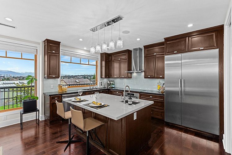 SPECTACULAR TOP OF THE HILL Water, Downtown, City and Village VIEW!!! Modern, Sleek & Mint Condition. Amazing three level split house with all levels above ground! Stunning on a nearly 6600sq ft lot, this home offers featuring functional layouts. Entertainment sized living and OPEN VIEW for family room, dining and kitchen. Total of 5 bedrooms and 5 baths, massive rec room and soaring 14ft height theatre to entertain your guests. Extended playground back yard. Rooftop deck with a hot-tub to enjoy the breathtaking views! Top school catchment- P.W. , Kitchener, St George's, Crofton and close to UBC.