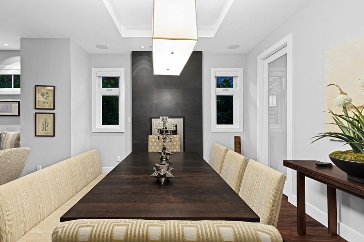 Rarely available Nexus-built home on quiet tree-lined street. Grey-on-grey craftsman exterior, modern interior with Sub-Zero/Wolf kitchen, dining, family & living rooms with fireplaces. Upstairs: 4 bedrooms incl. luxury primary suite with patio, 3-sided fireplace, walk-in closet & spa ensuite. Basement: rec room, wine room, gym & 2 bedrooms. Features 7.1 surround sound, LED intercom, cameras, HRV, radiant heat & A/C.