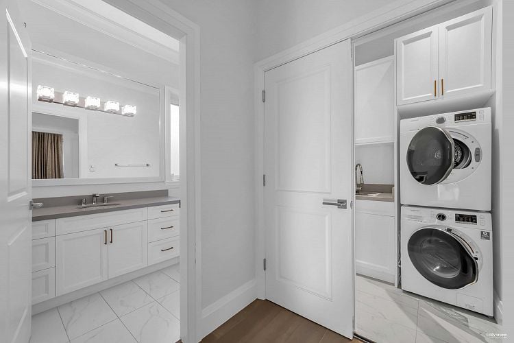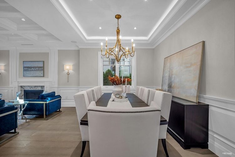 Custom-built luxury home in Vancouver's prestigious Dunbar neighborhood. Sitting on a 50' x 130.17' lot, this 4608 sqft residence offers 4 bedrooms, 7 bathrooms, plus a 856 sq ft laneway home with 3942 legal number. Designed with exceptional detail, it features 10-ft ceilings on main and lower levels, hardwood floors, radiant heat, A/C, heat pump, and a gourmet kitchen with full-height cabinetry. Upstairs boasts 4 ensuite bedrooms, including a stunning primary with steam shower. The lower level offers a spacious gym with steam shower, wet bar, and home theater. Enjoy a sun-filled south-facing backyard and sundeck. Prime location near UBC, Crofton House, and within walking distance to St. George's Elementary and Secondary. School catchment: Lord Kitchener Elementary and Lord Byng Secondary.