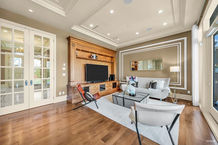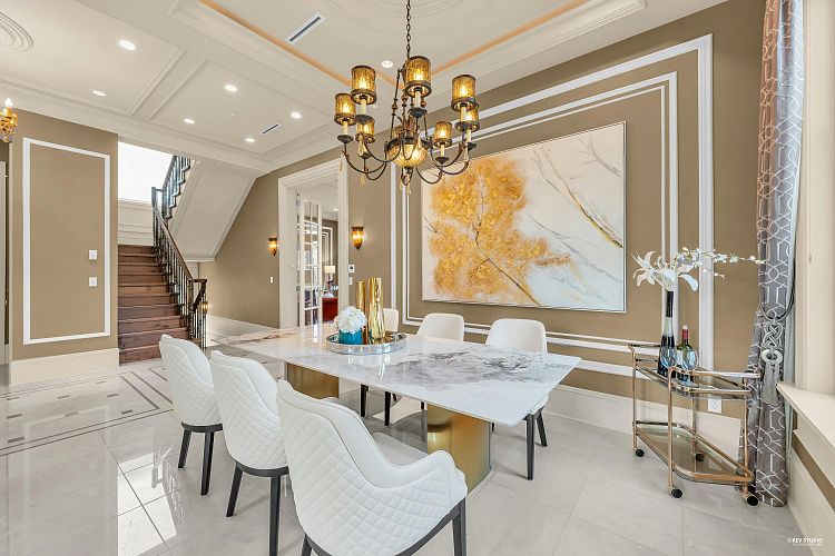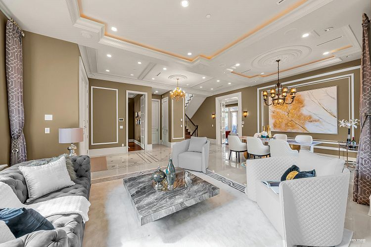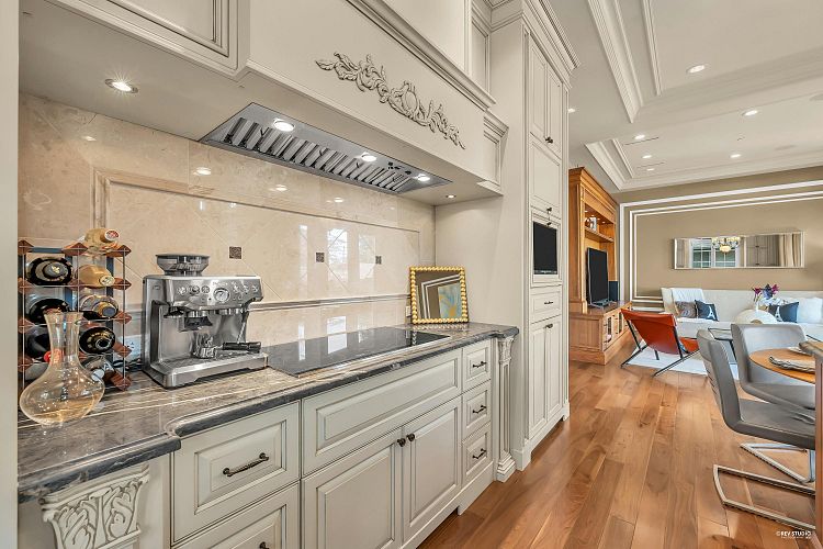 This gorgeous, well maintained designer-built mansion in South Cambie neighborhood offers 5,058 sf of refined living space. Designed by Carol Faan Interiors with architecture by Lung Designs Group, It features a beautiful Ivory Limestone facade, wood frame with STEEL support and professionally landscaped gardens. Highlights includes 11' ceilings on main, 10' downstairs, marble and walnut hardwood flooring, premium Miele and Bosch appliances, A/C, radiant heating, smart home system, extensive detailed millwork throughout, professionally-equipped home theatre & beautiful bar+rec room. Set on a 145' deep lot allows for large yard and huge patio. Top school catchment: Churchill & Jamieson.Must see!