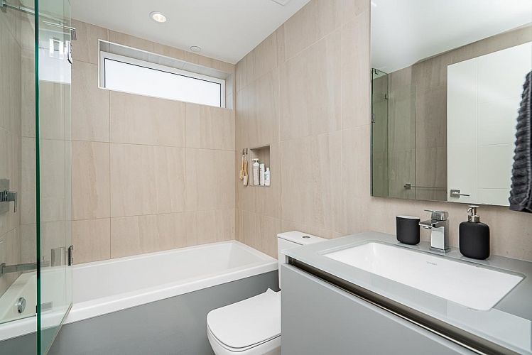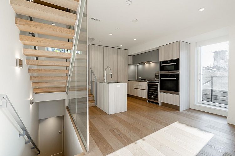 Nestled on the border of Oakridge & Cambie, this impeccably built 4-level 3 bedrm/3 bathrm "END UNIT" Townhome has NO units above or below you! Designed to impress w/floating staircase, warm earth tone finishings, bright expansive windows, a dream kitchen equipped w/Miele appls, paneled fridge & DW, gas cooktop, wall oven & microwave + wine cooler (all cabinetry in kit & bathrms imported from Italy!), lrg side patio area for gardening & summer BBQ's, & multiple-zone heating & A/C giving comfort in every season. Prime bedrm top flr stunning w/sundeck & 5 pce ensuite. Below is 2 bedrms & 4 pce bathrm. Bsmt level offers access to your 2 parking stalls, 2 pce bathrm, laundry, & den/storage. Walk to Oakridge Centre, Queen Elizabeth Park, Skytrain, community centre, top schools. SEE VIDEO !