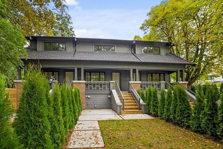 "The Heights" by Crossmark Projects offers this 3-bed+Den, 3.5-bath residence spanning 3 thoughtfully designed levels. The main floor boasts a spacious living room, a dining area perfect for family gatherings, and a gourmet kitchen with a 4'x10' island, custom oak cabinetry, integrated Sub-Zero fridge, Wolf 6-burner stove, and a large pantry. The upper level is a family retreat with 3 beds+ a primary suite with hotel-inspired ensuite. The versatile lower level includes a cozy theater/rec room, bedroom/office, and flexible gym space and exterior entry. Enjoy large front and back yards, parking, ample storage, and unbeatable walkability to all of Kerrisdale's amenities. Open House Sat/Sun October 11th/12th 2-4pm