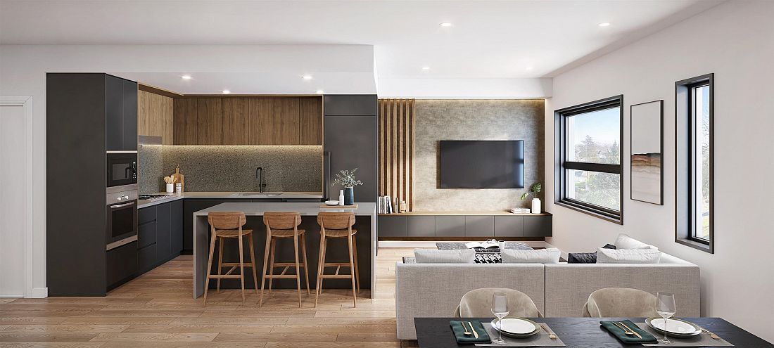 Welcome to Oakhaus, true Oakridge living at Vancouver’s Westside. This spacious 3 bedroom townhome is just a 5 minute walk to the SkyTrain and Oakridge Mall, future home of ultra luxury brands like Louis Vuitton and Tiffany & Co. Enjoy nearby Queen Elizabeth Park with tennis, pickleball, and golf, making Oakhaus the only brand new transit oriented townhome community on the Westside. Each home features 9 ft ceilings, a minimum 16 ft width, and a full size Miele appliance package, offering single family comfort and style. Private rooftop patio with gas bib, EV ready parking, and locker included. Three show homes available. Call for our latest promotion.