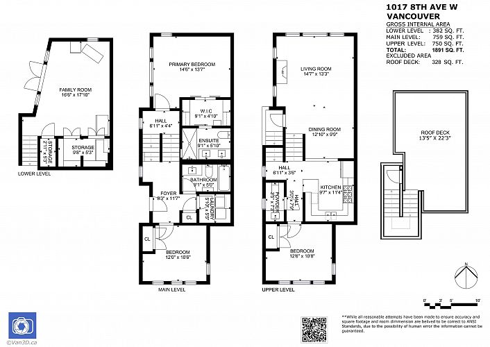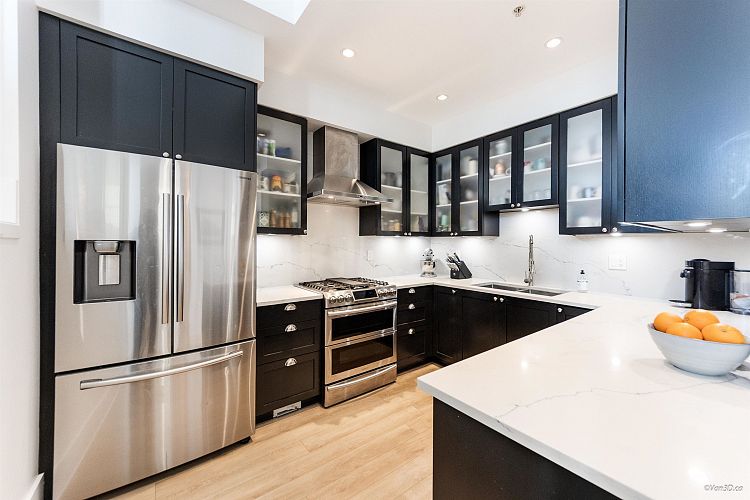 Ultra-private, completely detached townhome in an exclusive 4-unit complex by renowned builder, Trasolini-Chetner! This exceptional home feels like a single family home in a private, gated community. Split-level floor plan with amazing 360 degree False Creek water, North shore mountain and city view, from your stunning personal 328 sq.ft. rooftop deck; perfect for all your outdoor entertaining & fireworks viewing! Designer kitchen w/quality appliances, incl gas range. True 3 bedroom, 2.5 bath, w/large family room below(could be 4th bedroom). Meticulously maintained. Strata fee includes all heat, hot water & gas! Walk to VGH, Granville Island & seawall, Skytrain, shopping, cafes & more. 2 secure parking stalls & ample storage. Pet & rental friendly.