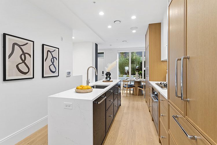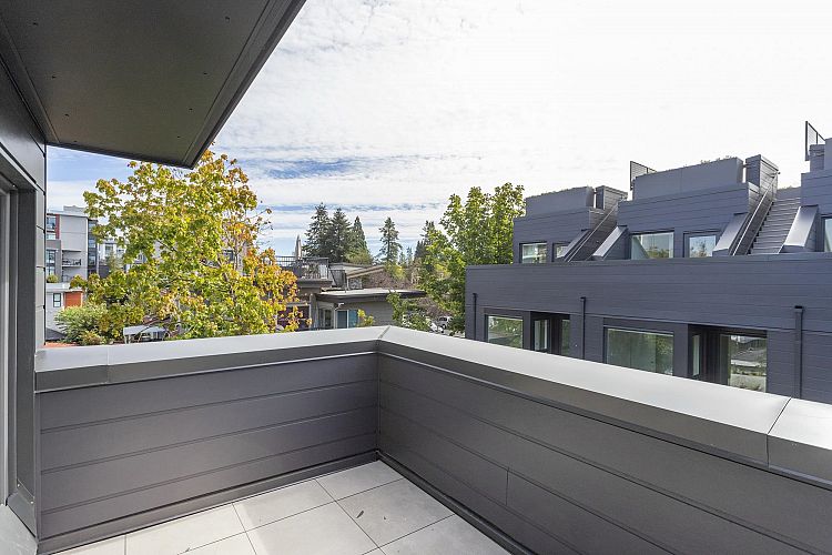 MOVE IN READY | Discover this stunning corner home — a 3-bedroom & den + flex residence at Seasons by Sightline, offering modern living on a quiet, tree-lined street. The bright and airy living area flows seamlessly into a gourmet kitchen with Miele appliances, sleek cabinetry, and an oversized island. The primary suite features an en-suite bath, walk-in closet, and a private patio with gorgeous downtown views. Two additional bedrooms, a den, and a versatile lower-level flex space provide ample living and work-from-home options. Enjoy the private patio and landscaped surroundings. Includes A/C, custom built-in cabinetry, built-in speakers, EV parking, and direct parkade access. Prime location near shopping, SkyTrain, dining, and top schools. Schedule your showing today!