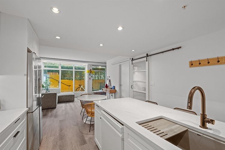 Look no further - the CONCRETE Fairview townhome that you've been waiting for has just hit the market! This elegant 2storey home offers 2beds/3baths, and has been tastefully updated with a new kitchen, new bathrooms, updated appliances & fresh paint. Enter in through the private entrance off of the 118sf patio and into an open concept lower level with a spacious living room, gourmet kitchen, eating area, ample storage & a conveniently located powder room. The upper level offers two generously sized bedrooms, two additional bathrooms, and a bright patio. The iconic '700 West 8th' building is just steps from Whole Foods, Cambie Street eats, major bus routes, Skytrain Stations, and just a short walk to Charleson Park and the beautiful False Creek seawall. Open: Sat, Nov 22nd from 2-4pm