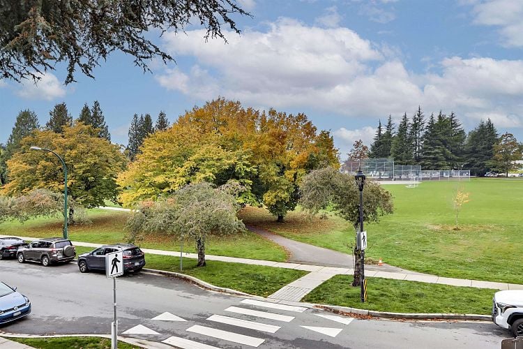 Location! Location!Location!luxurious gated Weston Walk in Oakridge neighborhood. Steps away to Oakridge, Skytrain, Langara, UBC bus, everything. 1796 sqft, the largest SE corner unit with 3 side exposures. It offers two legal units with separate #6342&6318. Main unit comes with 3 bdrms and 3 baths on the main and upper floors. over 500 sqft rooftop patio as a gift for the entertainment. Open plan with many windows and natural light. Contemporary kitchen cabinetry and high-end appliances. Legal suit, an open studio on the ground floor with a separate door and patio, also comes with its own kitchen and washer. A quiet and peaceful complex in Central. MUST SEE!
