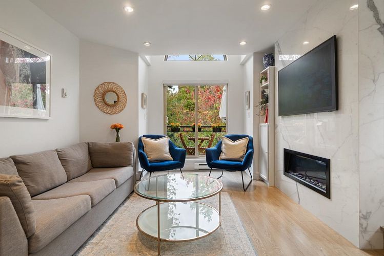 Nestled on a quiet street between Oak & Cambie, this fully renovated 2-bed, 2-bath corner townhome offers over 1200sqft of bright, comfortable living. The open-concept main level features a contemporary kitchen with stainless steel appliances & granite countertops, flowing seamlessly into a spacious living area accented by a beautifully tiled fireplace. Upstairs, you’ll find two generous bedrooms and two full baths, including a primary ensuite with built-in steam shower plus a large laundry/extra storage room. Enjoy the convenience of direct street access or enter through the parkade via elevator. Located steps from VGH and short walk to Douglas Park, this home offers the perfect balance of urban convenience & peaceful city living. Comes with 2 parking spots & an over height storage unit.