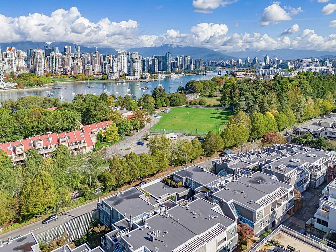This Executive 3-Bedroom Luxury Townhome offers nearly 2,000 sq ft of living space, breathtaking city, mountain, and partial water views. Fully rainscreened, with a new roof and Trex decks completed in 2024. The home boasts many upgrades including a steam shower, jet tub, new Samsung range, quartz countertops, and modern LED lighting throughout. Enjoy the convenience of a private attached garage and 2 additional parking spots. Located in the Broadway Corridor, this property is ideal as a current home or a smart investment, with rental income potential of over $6,000/month and significant redevelopment opportunities.Walking distance to Granville Island, Sea Wall, VGH,cafes & restaurants. Act now to secure this rare offering!