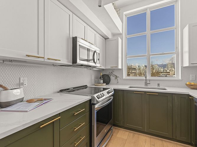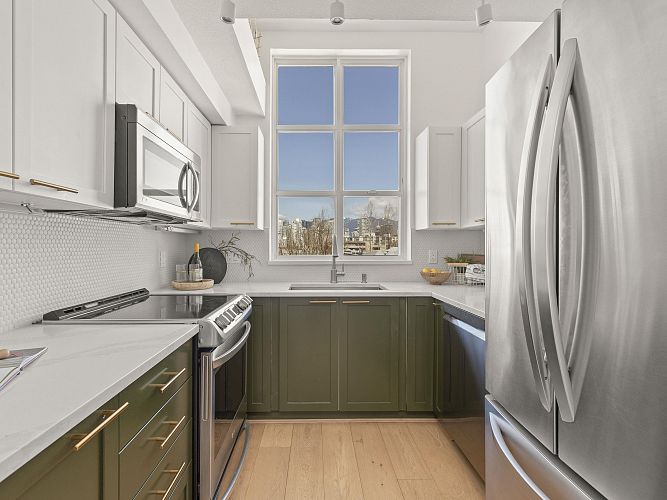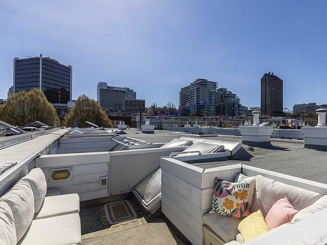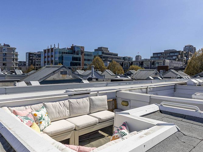 Welcome to the Ivy's! The largest home in the complex with no one above or below, private corner unit with stunning mountain & city views from almost every window. The upper floor features an updated kitchen w/ quartz countertops, over-height ceilings, large picturesque windows providing an abundance of natural light, S/S appliances, bright dining and living area features a cozy gas fireplace, hardwood flooring, convenient pantry room, and private rooftop deck with stunning views. The main level offers excellent bedroom separation, two bathrooms, and plenty of storage. The BUILDING: Fully rain-screened, this highly sought-after gated complex is well maintained and comes with 1 parking & 1 locker. The AREA: Steps from Whole foods, coffee shops, public transportation, and short walk to D/T