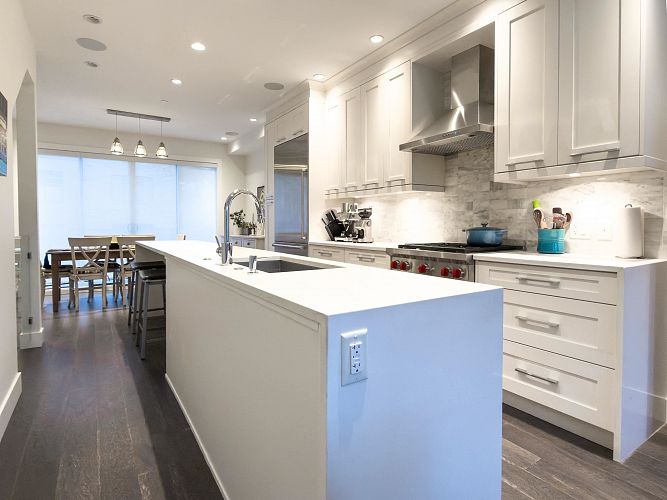 Rare opportunity to own a stunning 3 bed, 3 bath townhome at Tisdall Row in desirable Cambie/Upper Fairview. This elegant, light-filled home offers over-height ceilings, built-in speakers, fresh paint, refined flooring and exceptional craftsmanship throughout. The gourmet kitchen features solid wood cabinetry, quartz counters, an extra-large island, Wolf gas range, Sub-Zero fridge and Miele appliances. Spacious living and dining areas open to a lovely private patio. Upstairs offers 2 large bedrooms, including a king-sized primary suite with spa-like ensuite. Lower level includes a 3rd bedroom, storage and attached heated garage with direct access. Steps to Douglas Park, top schools, shopping, restaurants and transit. Beautifully designed city living in a prime location.